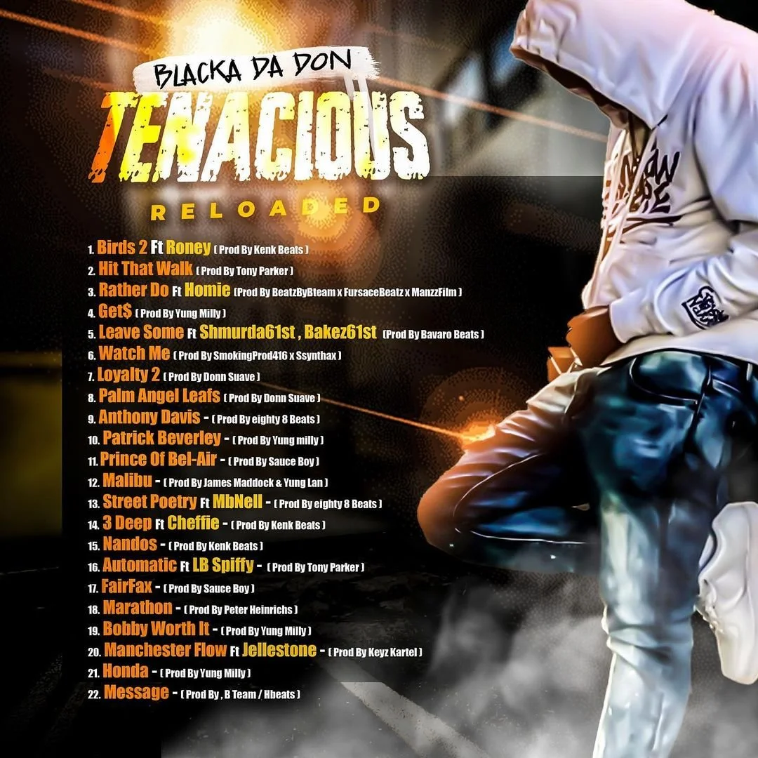 "Tenacious (Reloaded)" offers listeners an intimate glimpse into Blacka Da Don's world, where he seamlessly weaves tales of struggle, triumph, and personal growth. The album serves as a testament to his resilience and unwavering dedication to his craft, showcasing his ability to navigate through life's obstacles and emerge stronger than ever. With introspective tracks that touch on themes of perseverance, loyalty, and street life, Blacka Da Don establishes himself as an authentic voice representing the realities of his community.